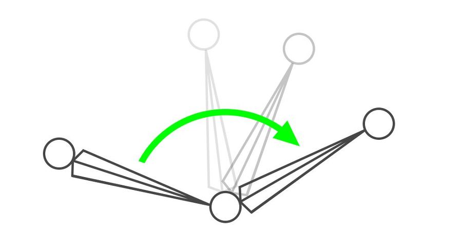 일반적인 애니메이션은 아래 그림처럼 정방향 운동을 합니다. 하위 본에 로테이션을 주며 한개의 본만 영향을 끼치도록